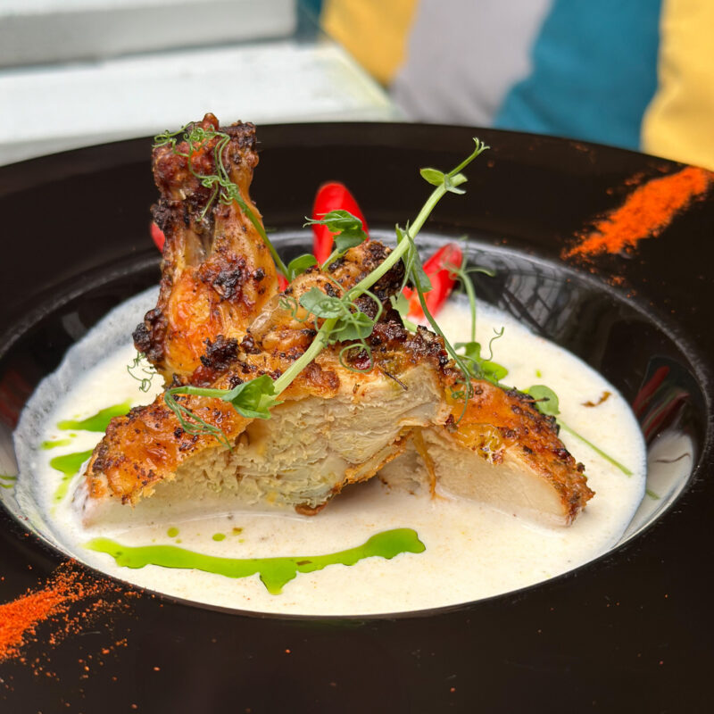Wątróbka/ ketjap manis/ karmelizowane puree z cebuli/ marynowana cebula/ chrupiące panko/ pieczywoDodaj do koszyka 28.00 zł -