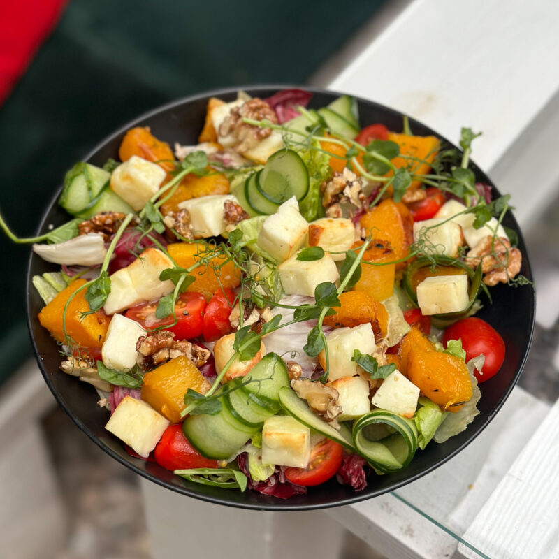 Mix sałat/ vinegrette/ pomidorki koktajlowe/ ogórek/ karmelizowana dynia/ grillowany ser hallumi/ orzechy włoskie w karmelu/…Dodaj do koszyka 44.00 zł -