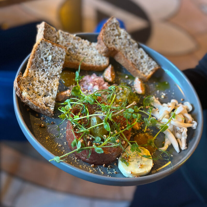 Szalotka/ ogórek kiszony/ kapary/ żółtko sous vide/ masło ziołowe/ pieczywo/ żółtko suszone/ marynowane grzyby shimei/…Dodaj do koszyka 49.00 zł -